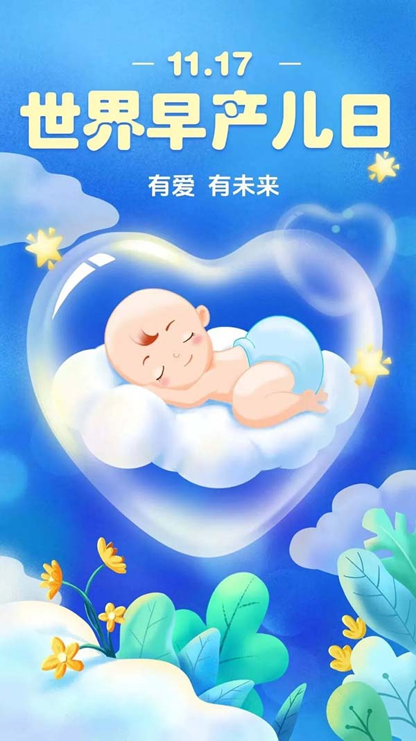 为倡导人们更多关注早产儿的生存与发展,采取有效行动,降低早产导致的疾病与死亡风险,2011年由世界卫生组织呼吁,将每年11月17日设立为世界早产儿日。国家卫生健康委妇幼司在2016年将“有爱,有未来”设立为世界早产儿日中文永恒主题,旨在呼吁全社会关爱早产儿及其家庭,提高早产儿生命质量,促进母婴健康。